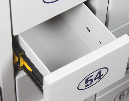 4、多功能智能箱柜是一种多格密集印章系统,分大门和内格子柜门两道“门”。